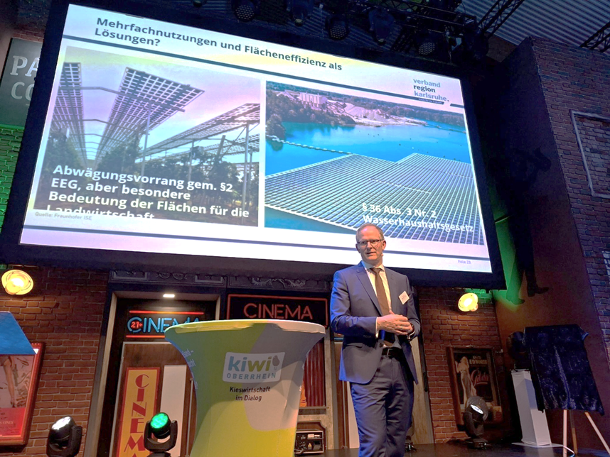 Die Nachfrage nach mineralischen Rohstoffen bleibt hoch – nicht zuletzt durch Infrastrukturprojekte, Wohnungsbau und die Energiewende. Gleichzeitig wächst der Druck auf verfügbare Flächen entlang des Oberrheins stetig. „Alles wächst nur die Fläche nicht“, wie Professor Dr. Matthias Proske, Direktor des Verbands Region Karlsruhe, in seinem Vortrag konstatierte.